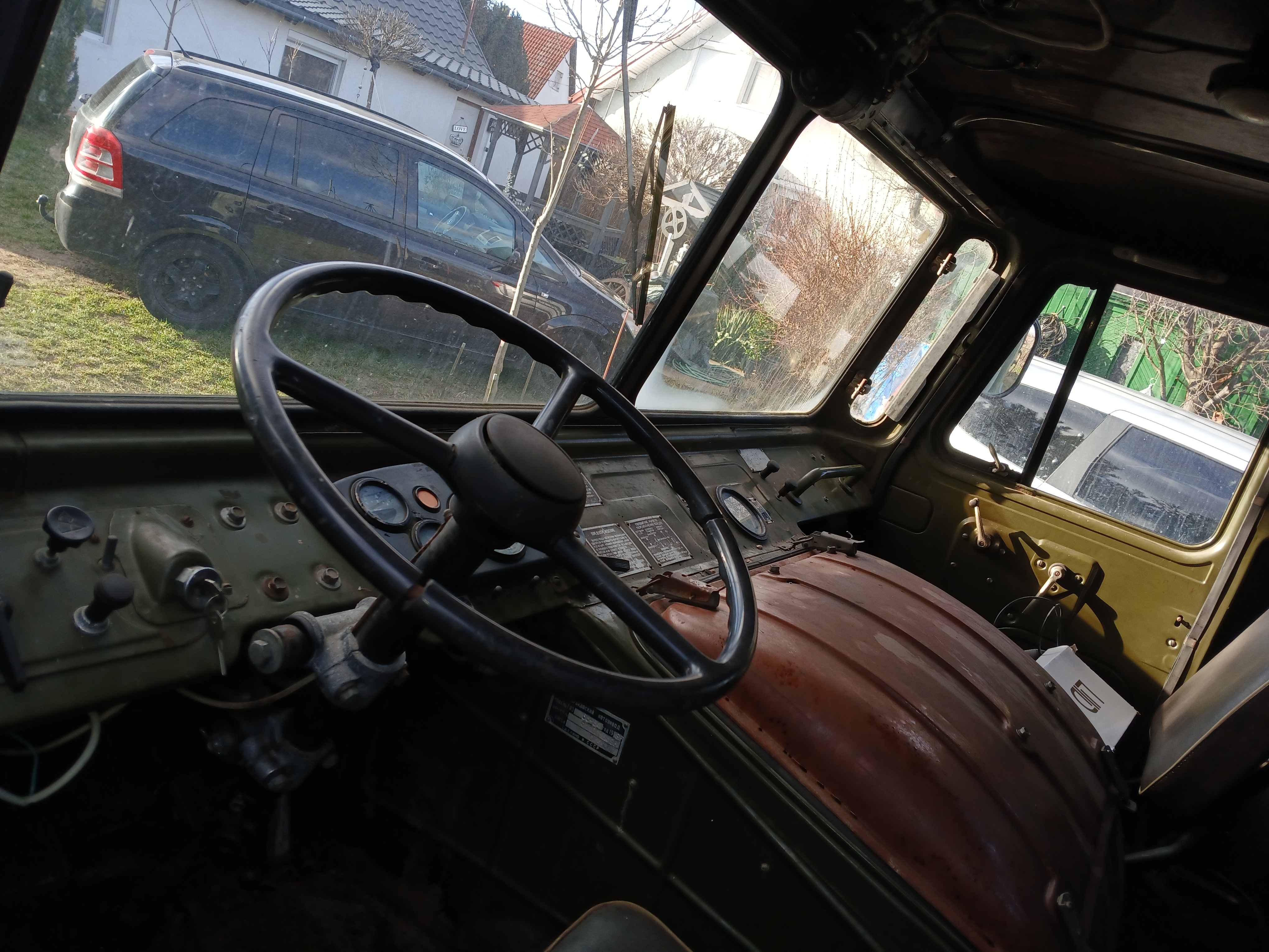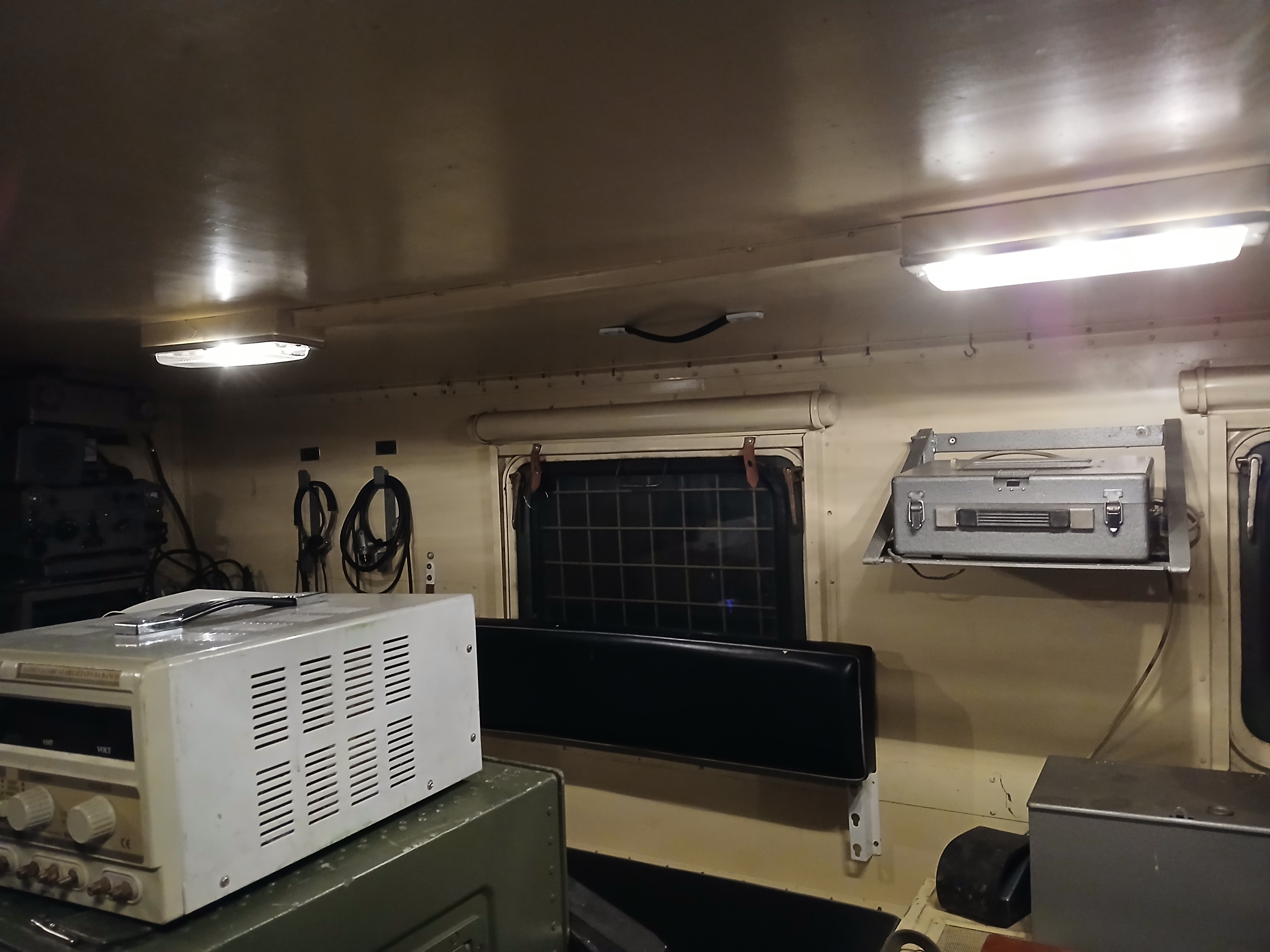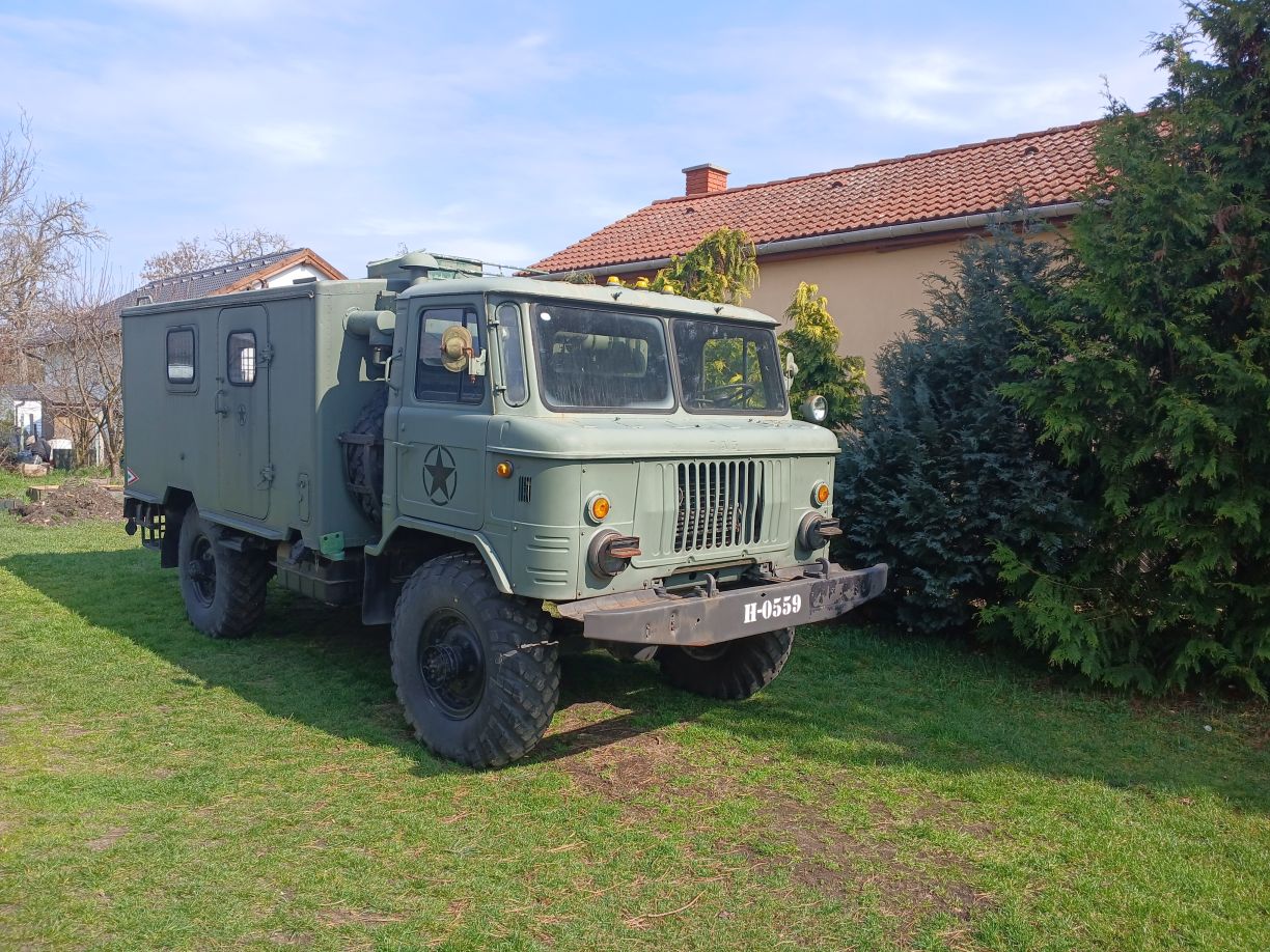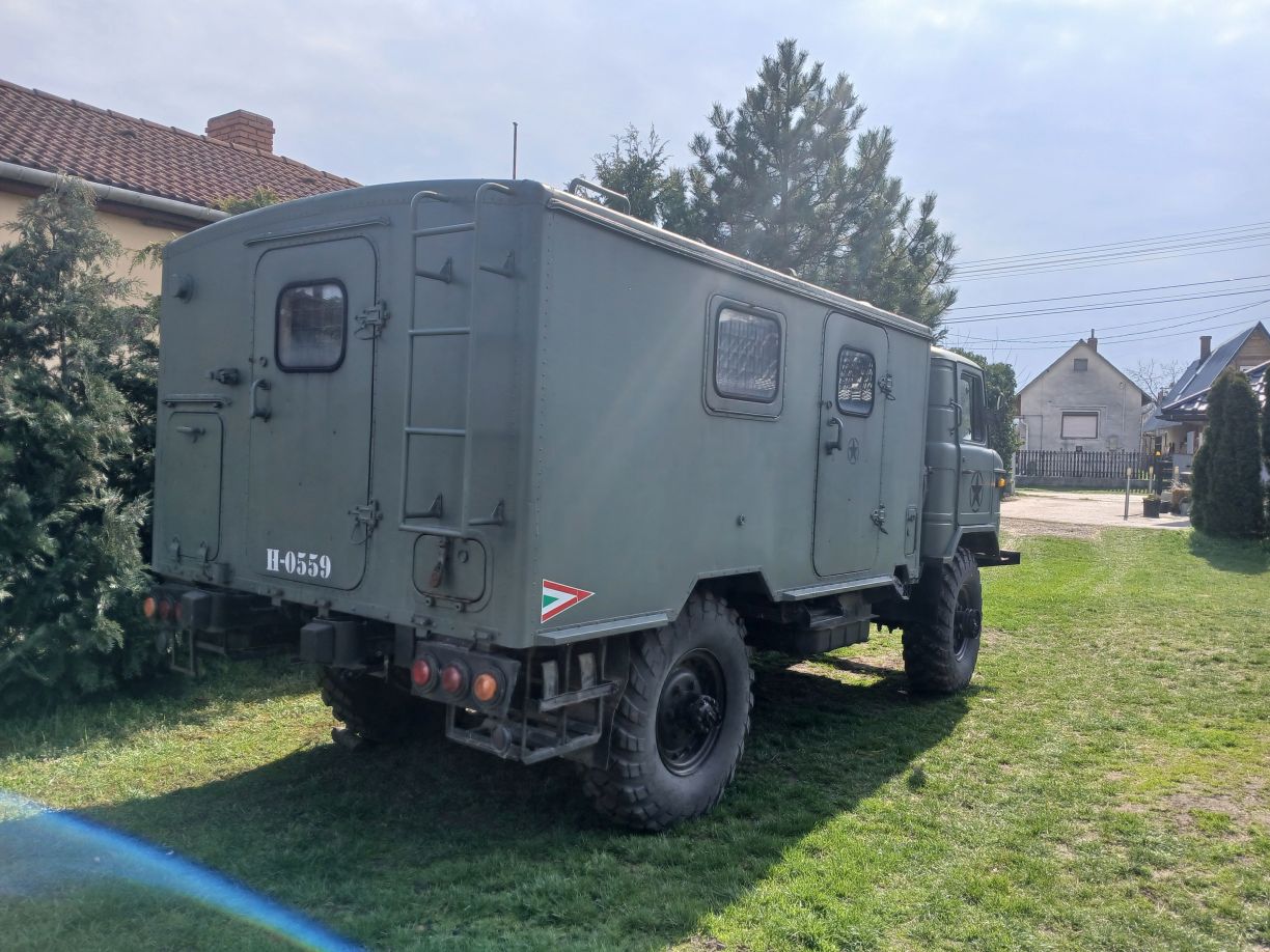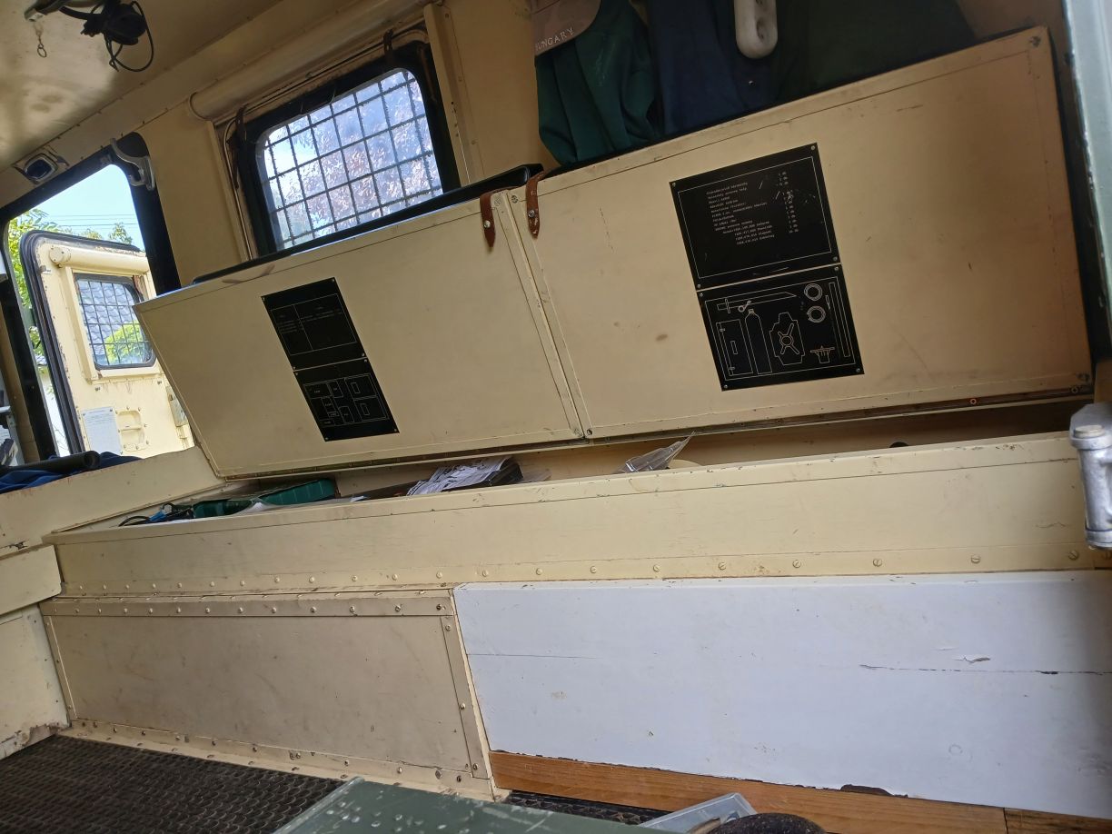 Egy üres GAZ-66 bódéval vettem, az elválasztó falat kivettem, így jobban jár a levegő benne, s jobban áttekinthető, komfortosabb lett a tér. Asztalt és padládát is beszereztem, s beépítettem az R-142 állomáshoz tartozó berendezésekkel együtt. Sajnos a jachta P-590 hiányzik belőle, de sebaj. A felépítményre felszereltem az antennák és árbócok nagy részét, áramfejlesztőt is beszereztem, orr generátort is beszereztem, kannákat is beszereztem hozzá. A kocsi műszerfalát nem bántom, de az odavaló egységeim megvannak.
