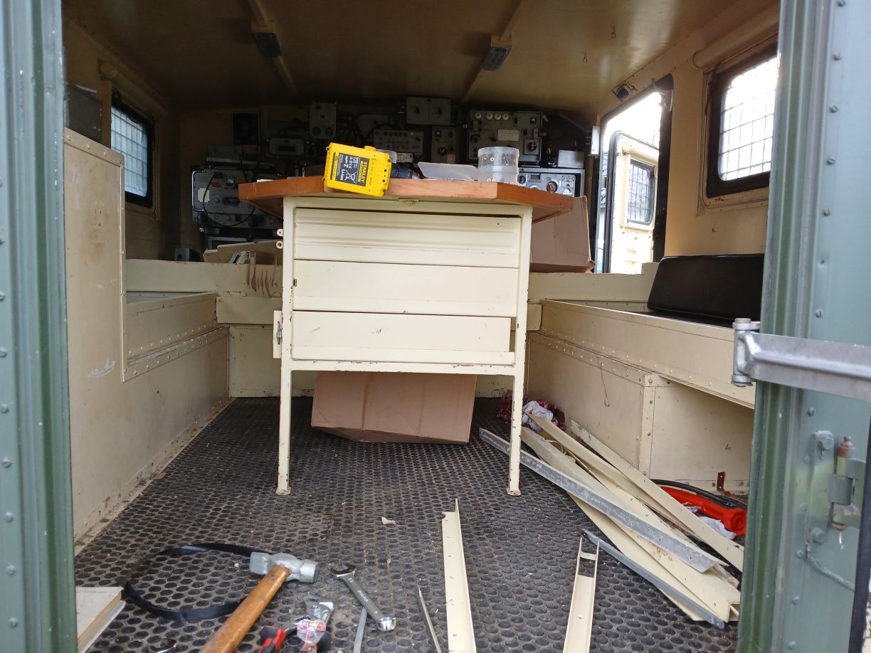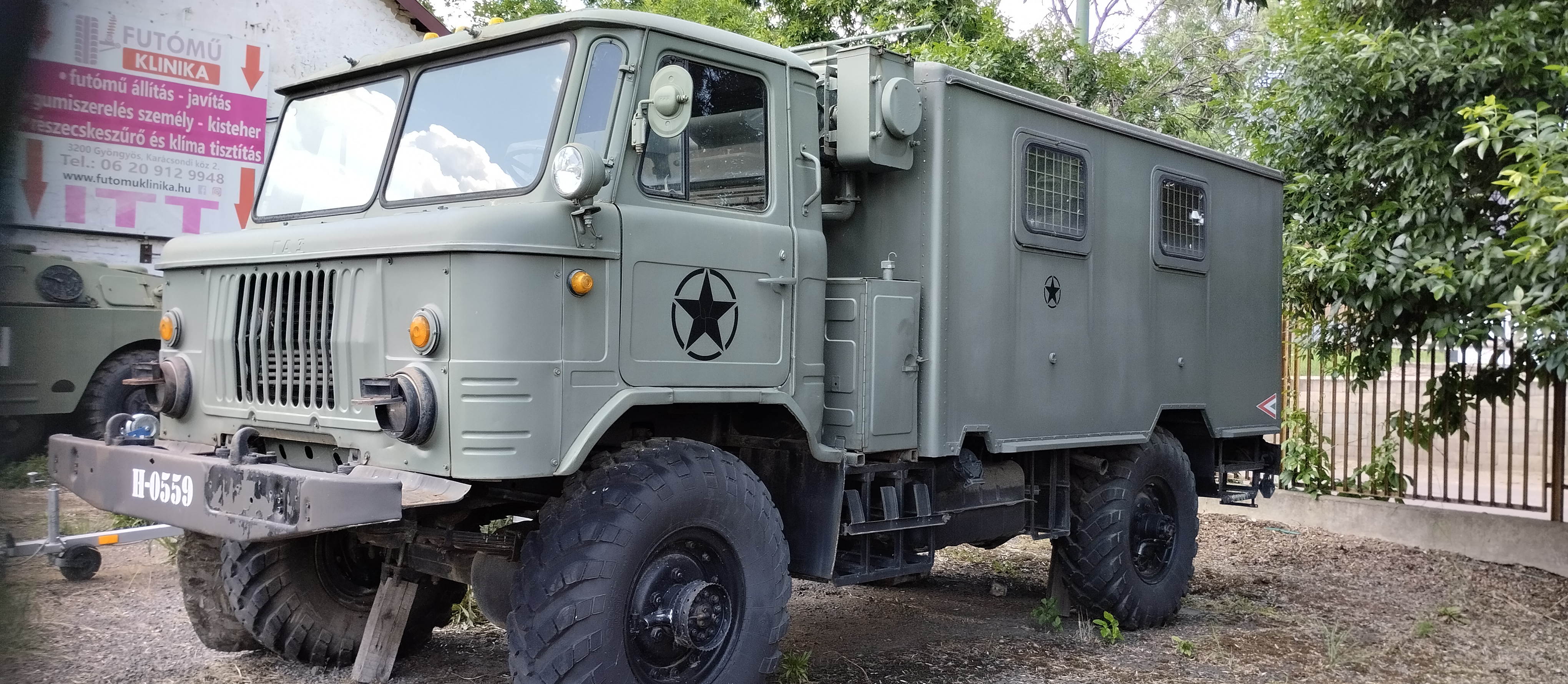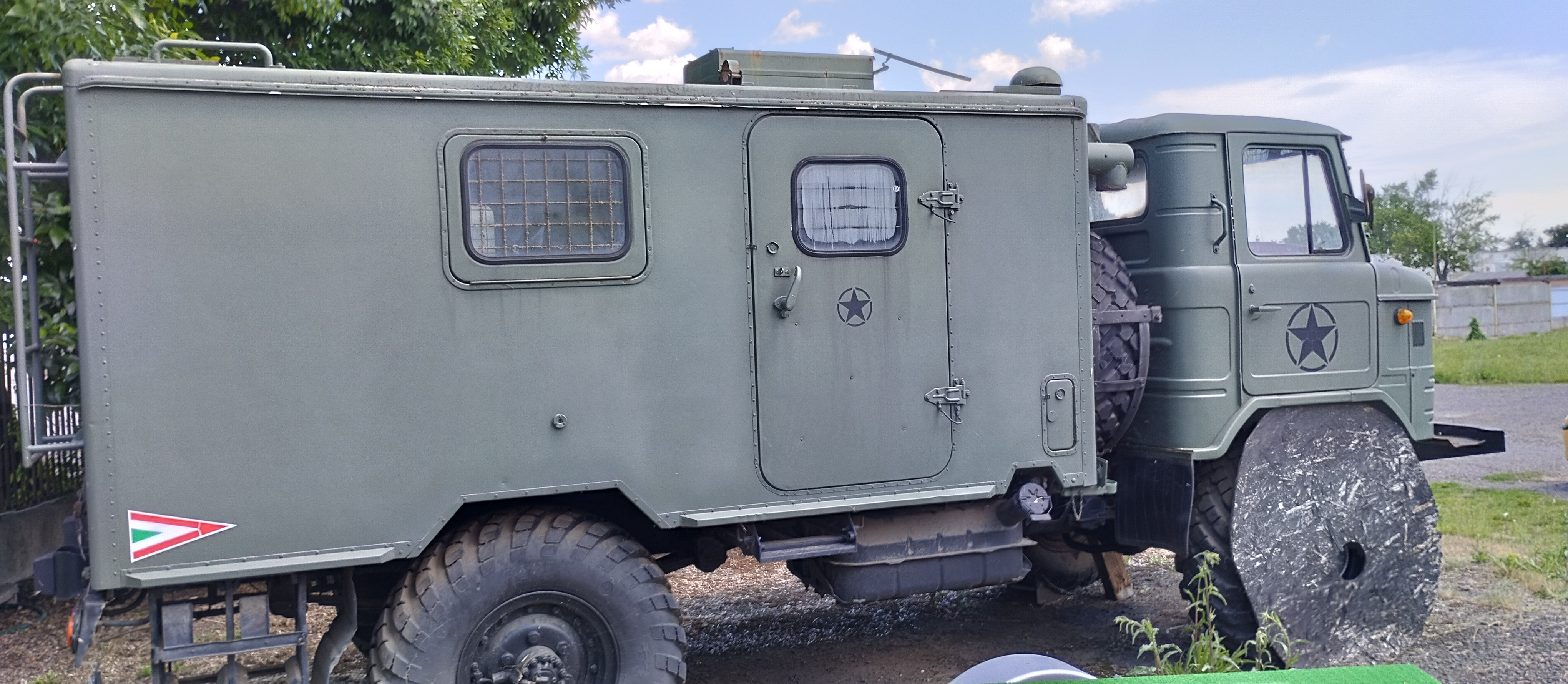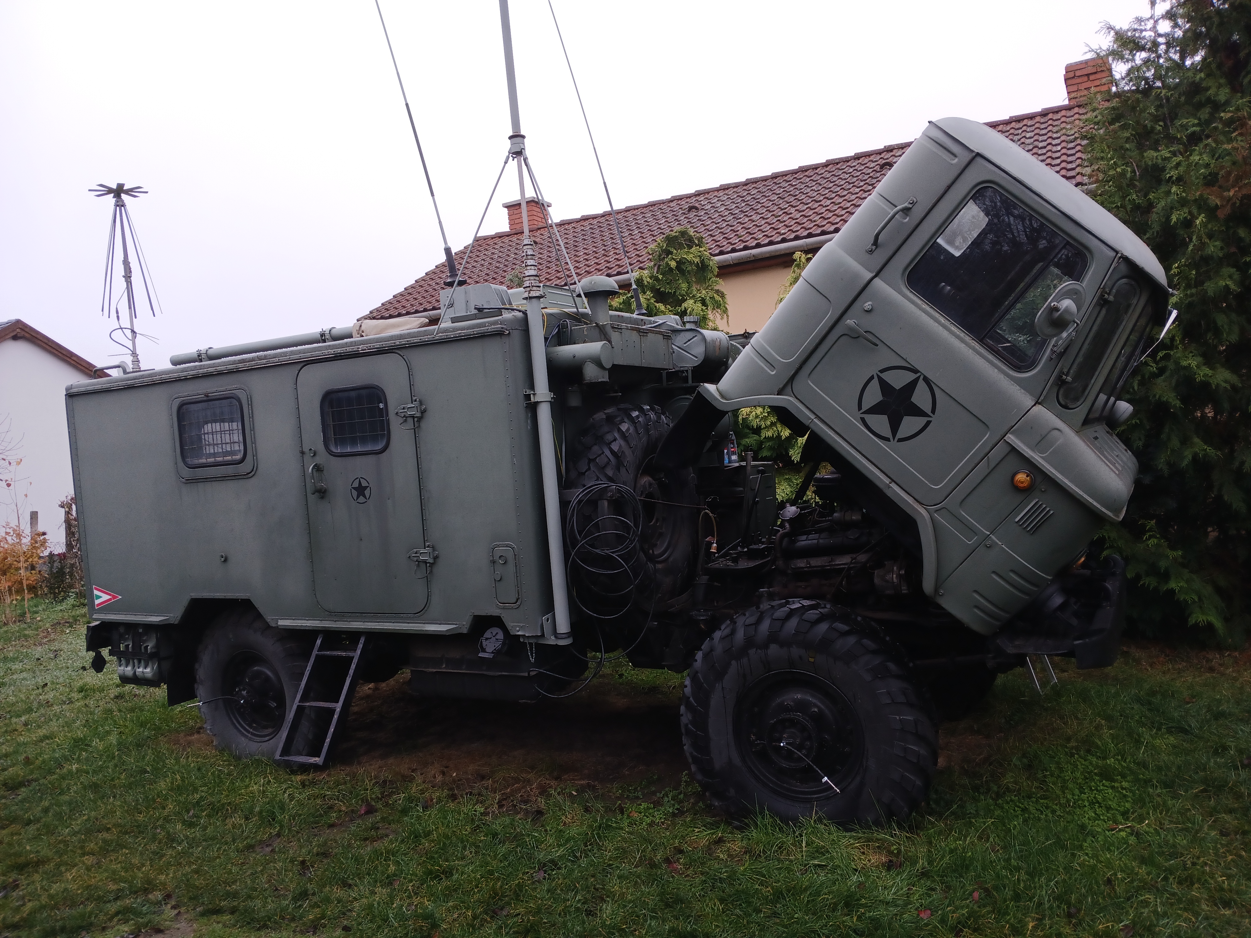 Egy üres GAZ-66 bódéval vettem, az elválasztó falat kivettem, így jobban jár a levegő benne, s jobban áttekinthető, komfortosabb lett a tér. Asztalt és padládát is beszereztem, s beépítettem az R-142 állomáshoz tartozó berendezésekkel együtt. Sajnos a jachta P-590 hiányzik belőle, de sebaj. A felépítményre felszereltem az antennák és árbócok nagy részét, áramfejlesztőt is beszereztem, orr generátort is beszereztem, kannákat is beszereztem hozzá. A kocsi műszerfalát nem bántom, de az odavaló egységeim megvannak.